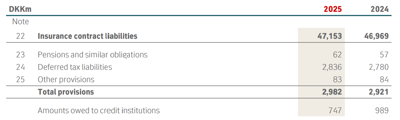 Excerpt of the liabilities section in the balance sheet of the Tryg A/S Annual Report 2025